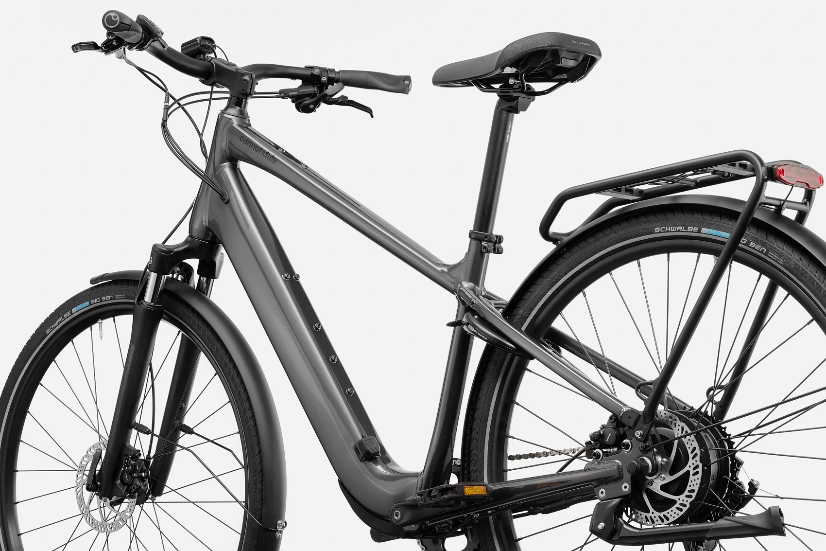Su cuadro de aluminio, ligero y absorbente, está diseñado para ofrecer una posición de conducción erguida que mejora la visibilidad y reduce la fatiga, perfecta para el uso urbano prolongado.